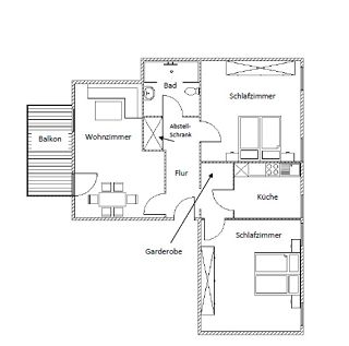 Die Wohnung ist modern und gemütlich eingerichtet. Sie verfügt über zwei Schlafzimmer, ein großes Wohn-und Esszimmer, separater Küche und ein modernes Bad
